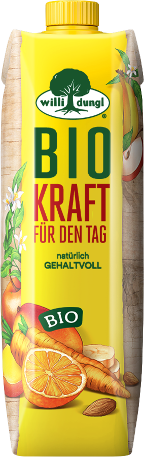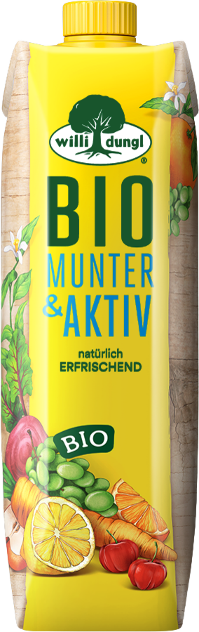 Die zwei harmonischen Frucht- und Gemüsesäfte Kraft für den Tag und Munter & Aktiv sind in Bio Qualität verfügbar und zudem vegan zertifiziert.